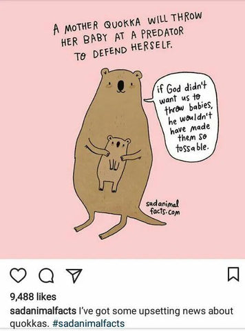 Why is it said that quokkas are crazy about throwing their babies? This can be traced back to June 2018. At that time, a blog about popular animal trivia <Sad Animal Facts> posted the following picture on the instagram.