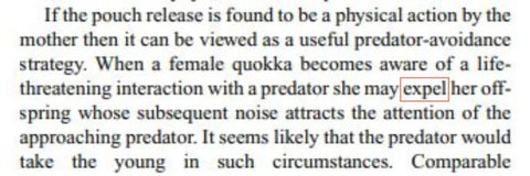 The general idea is that quokka mothers will throw their babies to predators to protect themselves.