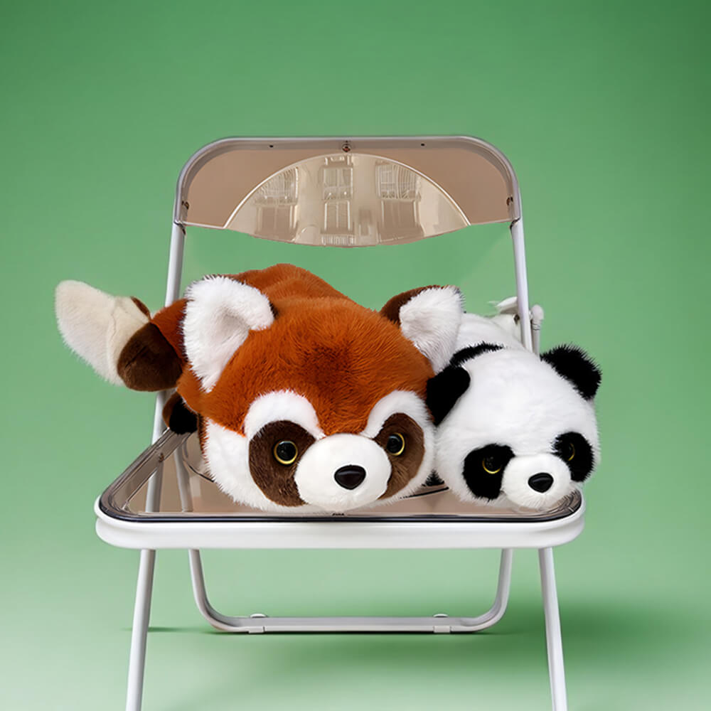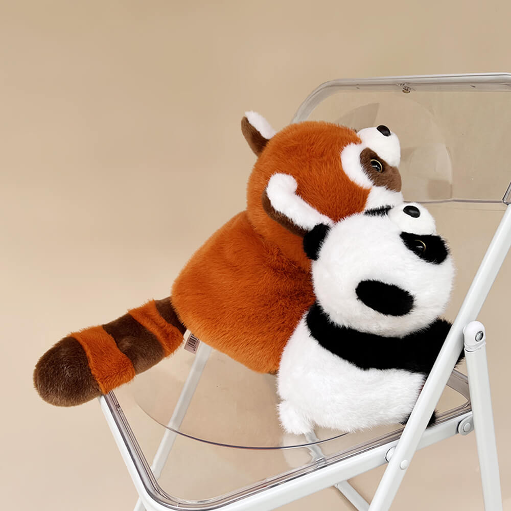 Our 2-in-1 Panda doll comes in two shapes, with one side is a black white panda. When you flip it over, it turns into a red panda.