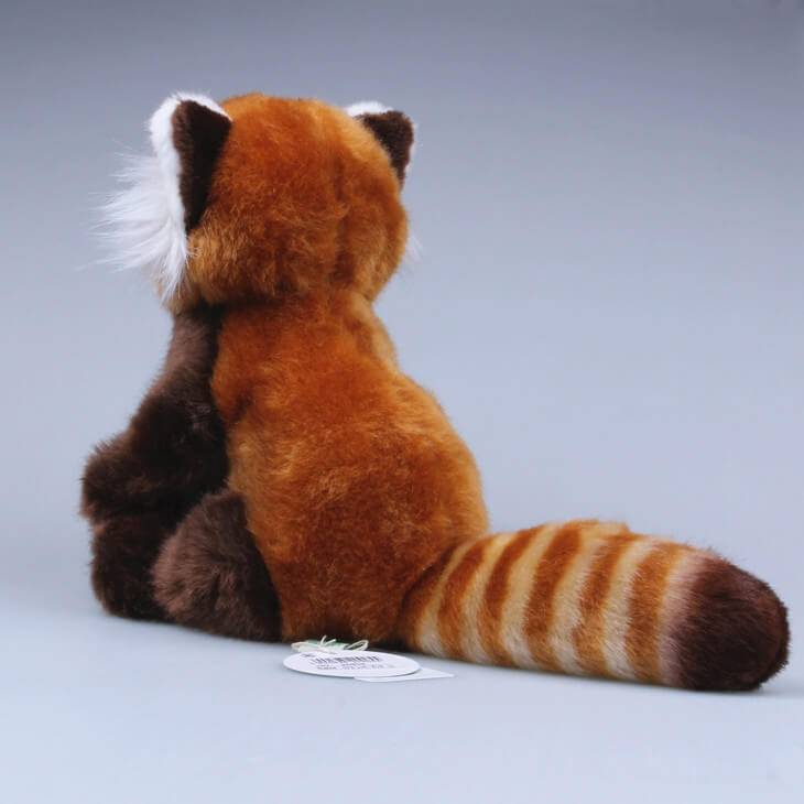 This Red panda features a fun and realistic design. Bright eyes add personality and a lifelike expression to this stuffed red panda.