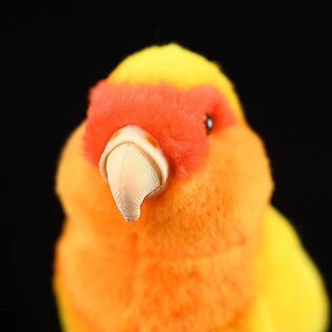 Realistic styling, made with high quality fabric and impeccable attention to detail. Silky plush makes this Yellow-collared Lovebird both huggable and durable.