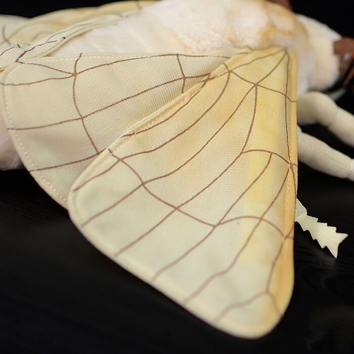 Realistic styling, made with high quality fabric and impeccable attention to detail. Silky plush makes this Domestic Silk Moth both huggable and durable.